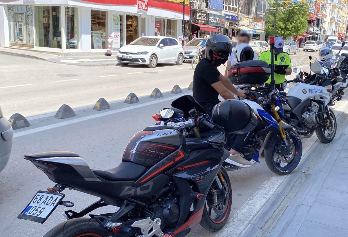 Aksaray İl Emniyet Müdürlüğü Trafik Tescil ve Denetleme Şubesi ekipleri, abart egzozlu motosikletiyle trafiğe çıkan ve çevreye rahatsızlık veren motosiklet sürücüsünü durdurdu.