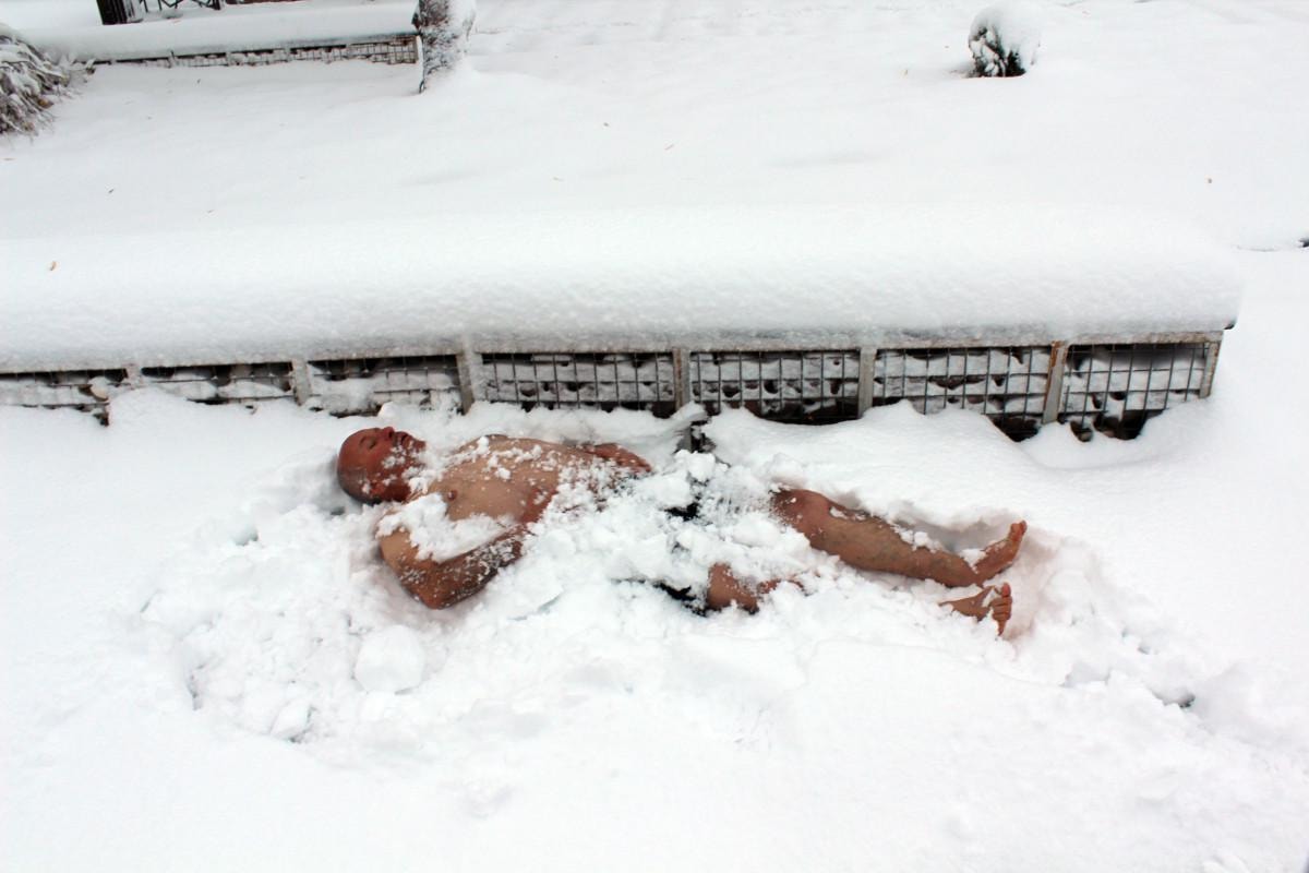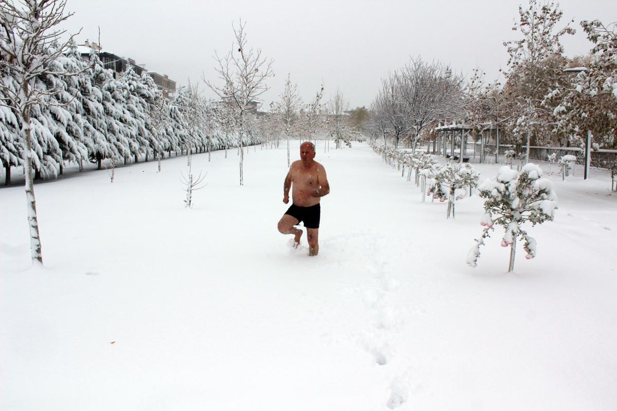 Bir turizm firmasında çalışan Sami Yüksel (65) ise parkta kar banyosu yaptı.