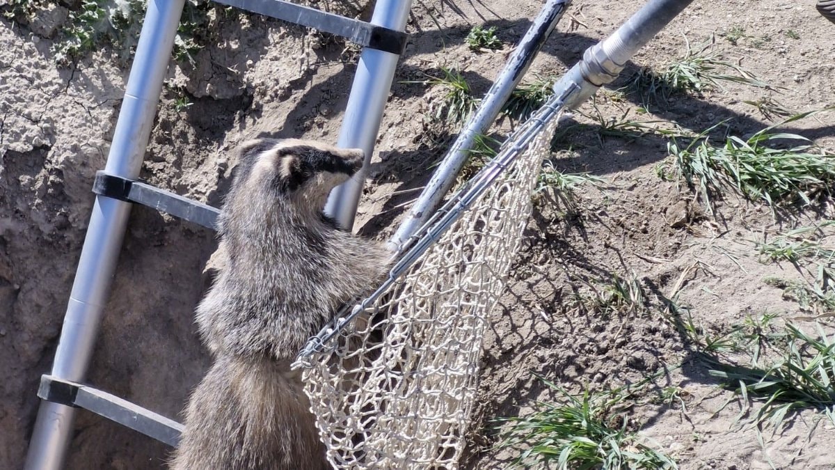 Ekipler, merdiven ve yakalama aparatı yardımıyla porsuğu kuyudan çıkardı.