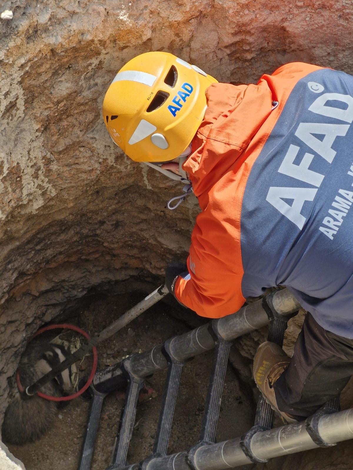 Kuyunun içine inen AFAD ekipleri, mahsur kalan canlının bir porsuk olduğunu belirledi.