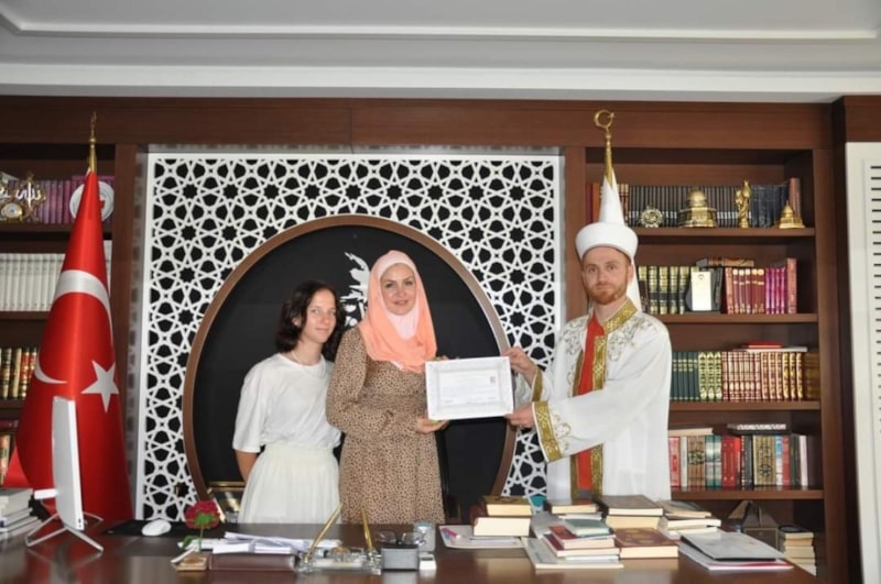 Alanya İlçe Müftülüğü'ne başvuran anne Natalia Kirpichnikova ile kızı Sofia Kirpichnikova için Müftülük makamında "İhtida Merasimi" düzenlendi.