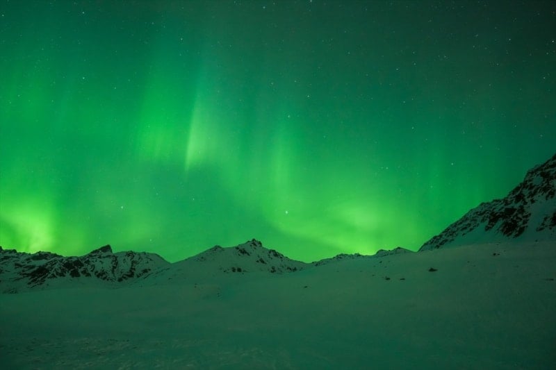 Güneş'ten gelen yüklü parçacıklar ile yeryüzünün manyetik alanının etkileşimiyle oluşan Aurora Borealis, özellikle Nisan ayında uzun gündüzler ve kısa geceler eşliğinde izleyenleri büyüledi.
