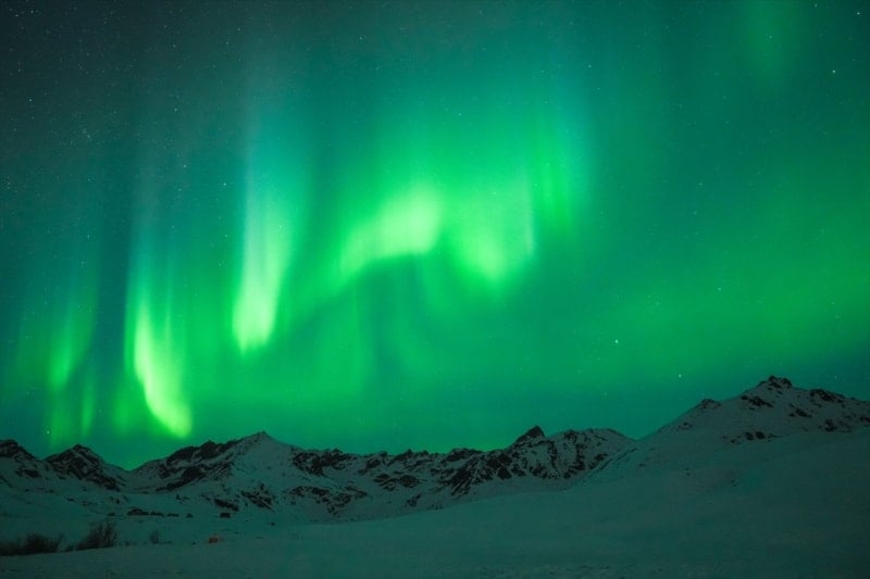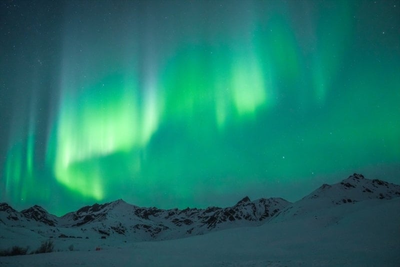 Nisan ayı ile birlikte günlerin uzadığı Alaska’da, kısa geceler boyunca kuzey ışıkları semayı süslemeye devam ediyor. Gökyüzünü mor, yeşil ve pembe tonlarına boyayan Aurora Borealis, izleyenler için unutulmaz bir görsel şölen oluşturuyor.
