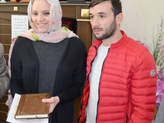 Konuşmaların ardından Müftü Hüseyin Can, nişanlı çifte Kur’an-ı Kerim, İslam İlmihali ve Temel Dini Bilgiler Kitabı hediye etti.