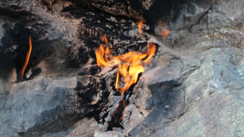 Yer altından sızan gazdan dolayı yıllardır yanmaya devam ettiği düşünülen taş, sık sık ziyarete uğruyor.