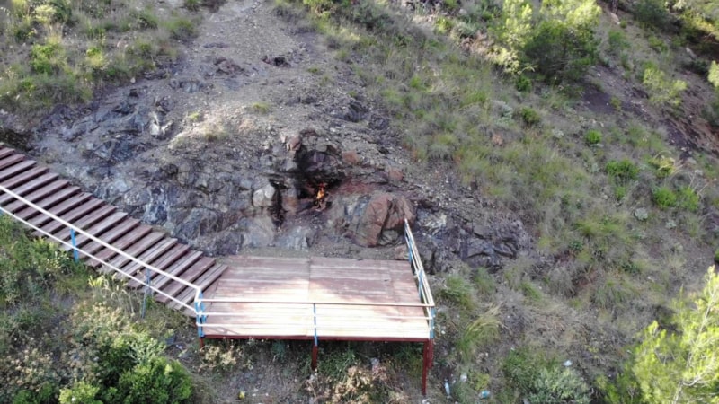 Hatay'da Amanos Dağı eteğinde bulunan ‘yanan taş’ yaşanan gaz sızıntısının etkisiyle yıllardır yanmaya devam ediyor.