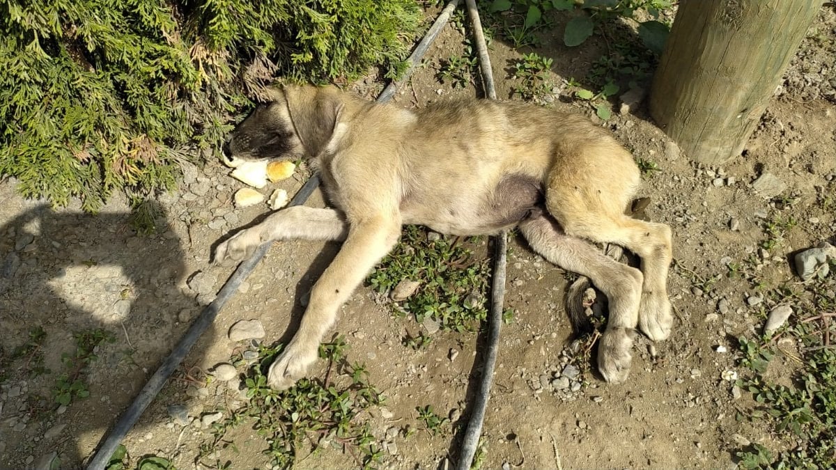 Durumu fark eden köy sakinlerinden Ömer Sarı, yaralı köpeğe su verdi.