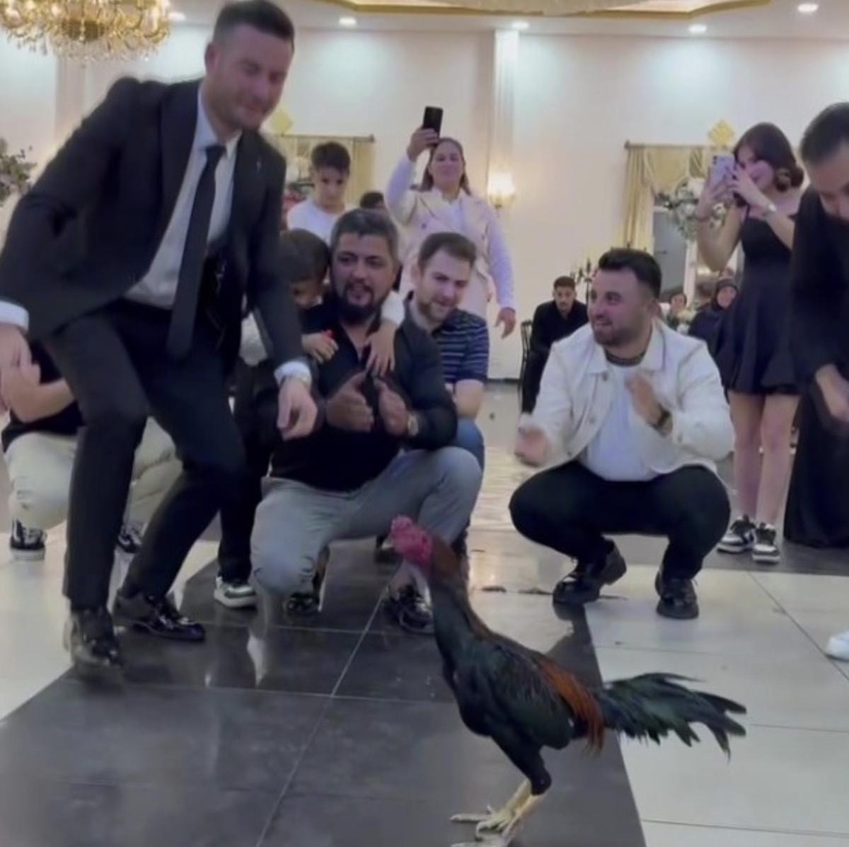 Kendisine takı olarak hediye edilen horozu gören damadın ve düğüne gelenlerin şaşkınlık yaşadığı o anlar ise cep telefonu kameralarına yansıdı.