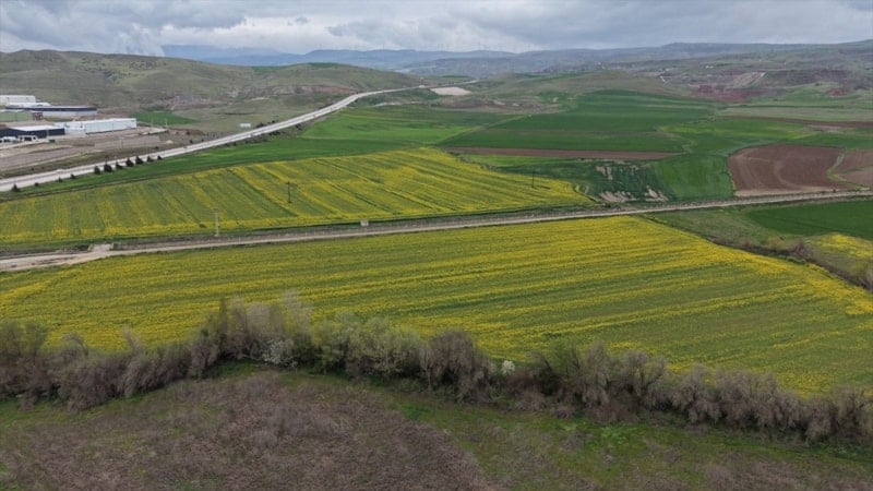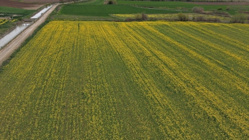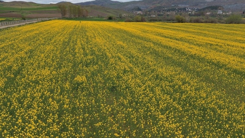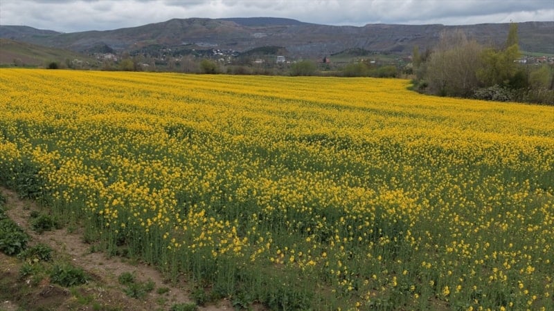 İlçede açan kanola çiçekleri, geniş tarım arazilerini adeta sarı bir örtüyle kaplayarak bölgeye görsel zenginlik kattı.
