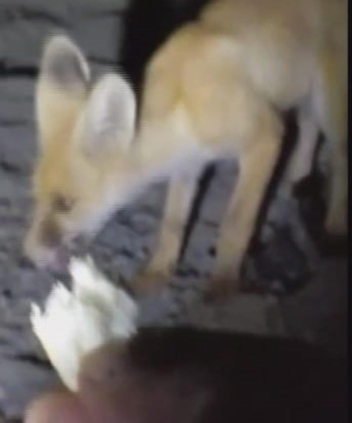 Tilkiye ‘Gel fıstığım benim’ diye seslenen Sarı, uzun süre aç kaldığı düşünülen tilkiyi elleriyle besledi.
