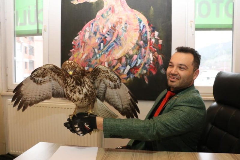 Taşova ilçesinde sürücü kursu sahibi Aykut Temiz, eğitim sırasında yol kenarında bulduğu yaralı şahine ‘Tofaş’ adını verdi.