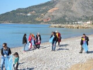 Mersin’in Bozyazı ilçesinde, ana sınıfı öğrencileri ile engelli kursiyerler sahil temizliği yaptı.