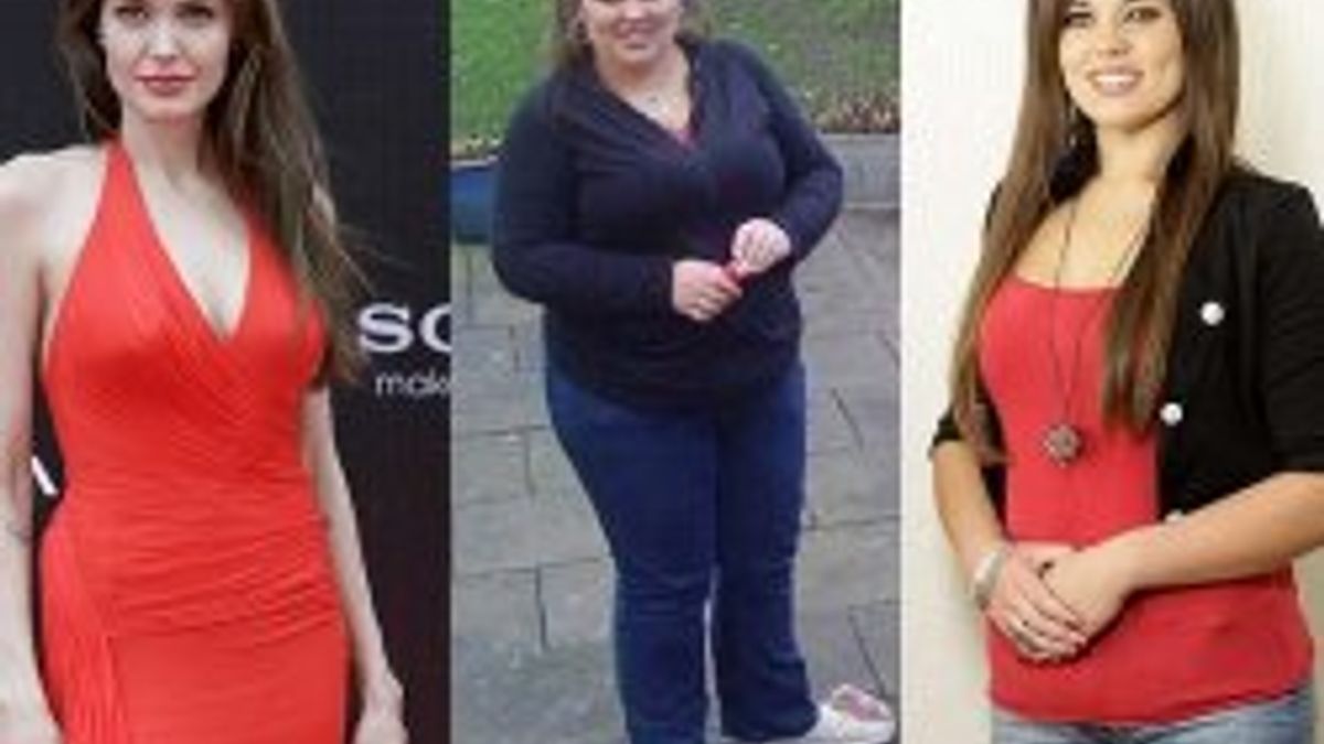 İngiltere'de üç çocuk annesi olan 140 kilo ağırlığındaki kadın, Angelina Jolie'ye benzeyebilmek için iki yılda 76 kilo verdi.
