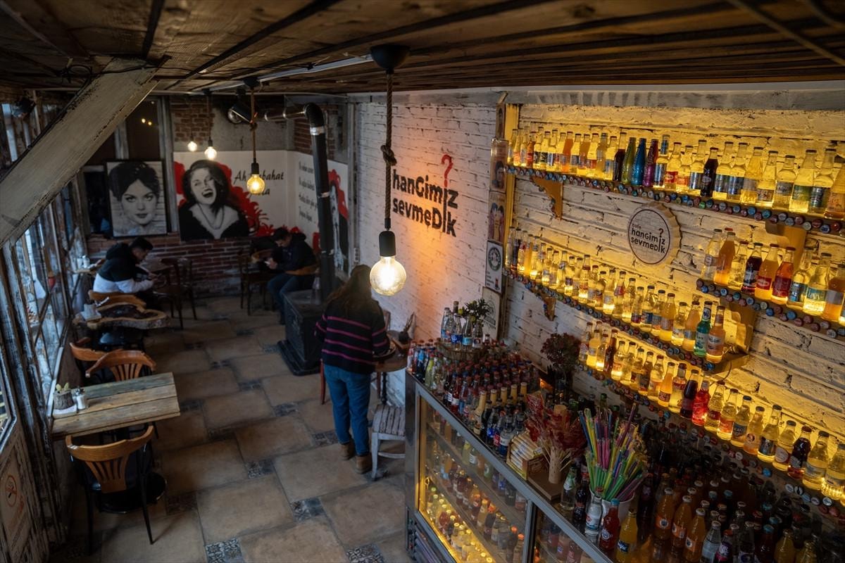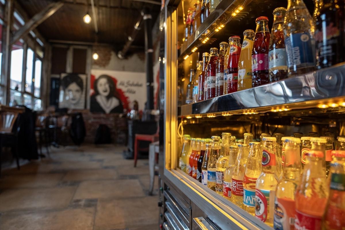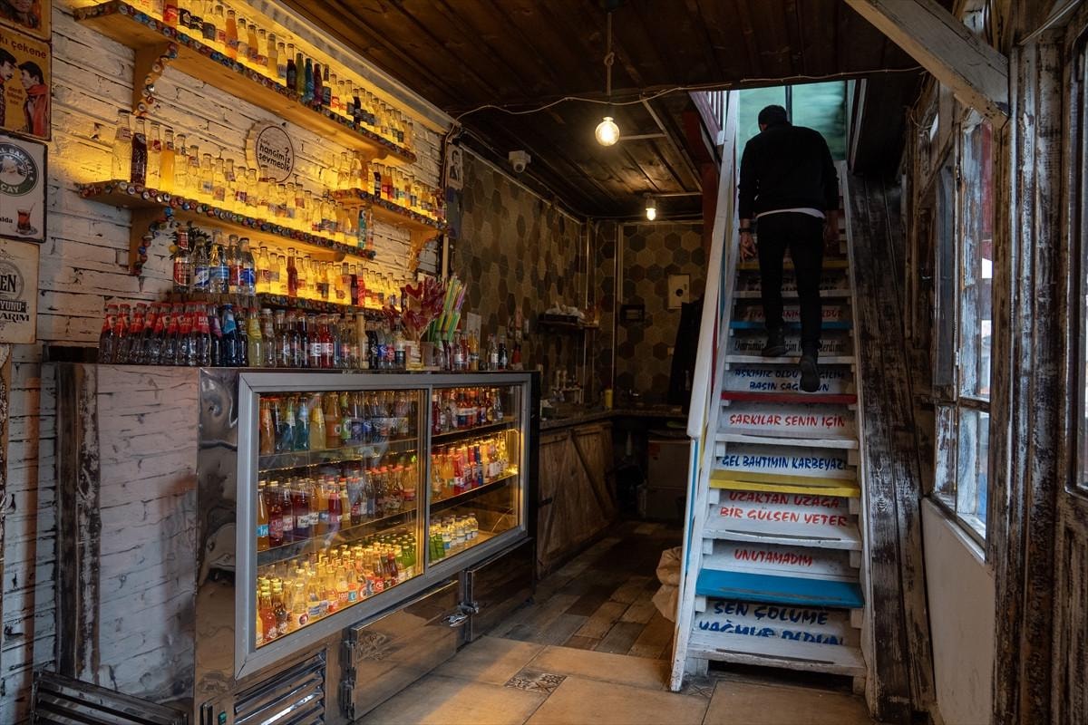 Kafenin duvarları ise nostaljik bir hava taşıyor; arabesk müzik tarihine damga vurmuş sanatçıların şarkı sözleri ve posterleriyle süslenmiş. Ayrıca, üretimi tamamlanmış gazoz şişeleri, özel bir koleksiyon alanında sergileniyor. Yaklaşık 30 metrekarelik bu alan, gazoz koleksiyonunu bir araya getiriyor ve müşterilere nostaljik bir atmosfer sunuyor. Sobayla ısıtılan kafe, renkli merdivenleri ve şarkı sözleriyle bezeli duvarlarıyla tam anlamıyla geçmişe yolculuk yapmanızı sağlıyor.