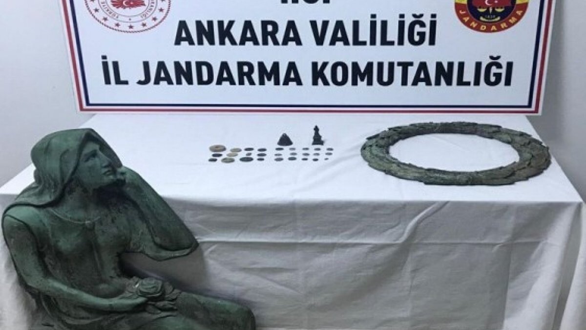 Ankara'nın Beypazarı ilçesindeki Dibecik Mahallesi'nde tarihi eser sattığı belirlenen U.A. ve S.D., jandarma ekiplerinin düzenlediği operasyonla gözaltına alındı.