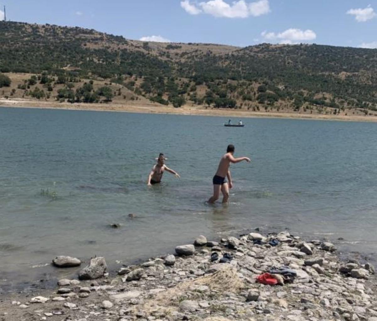 Buna rağmen serinlemek isteyen 5 kişi yüzme yasağı bulunan baraja girdi.
