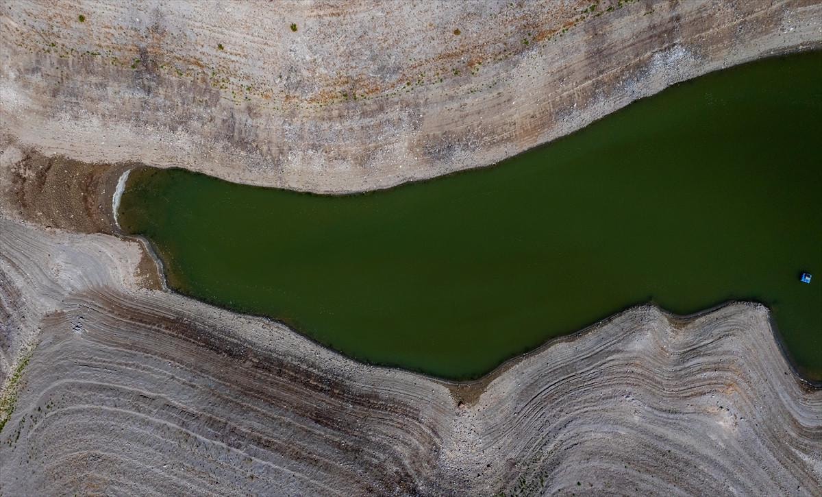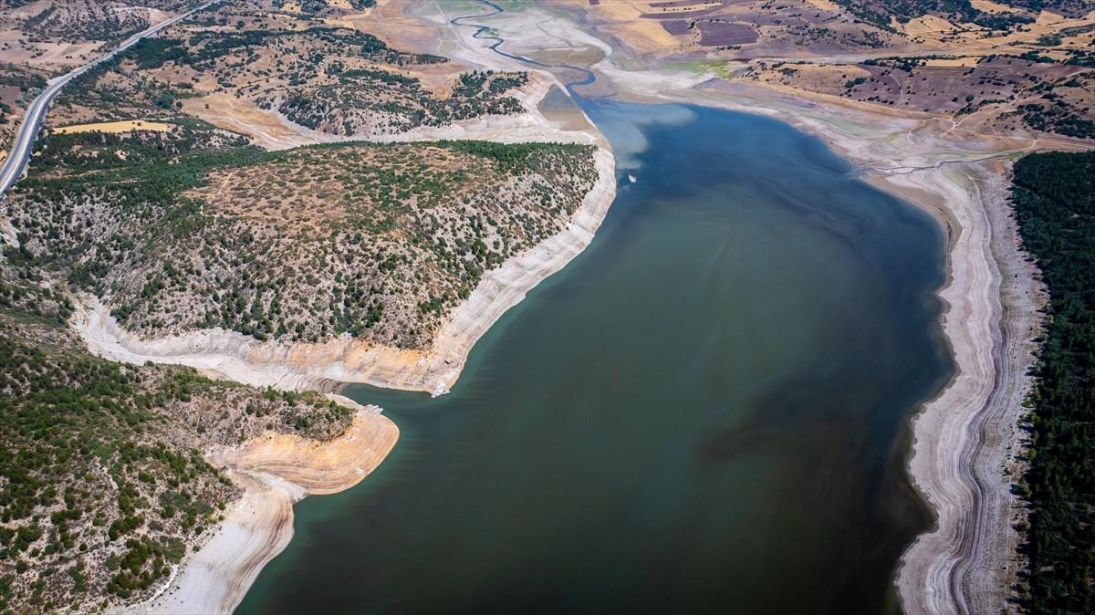 AA ekibi Ankara'ya içme ve kullanma suyu sağlayan barajlarda, kurak yaz mevsimi ve yetersiz yağışlar nedeniyle ciddi oranda düşen su miktarını görüntüledi.