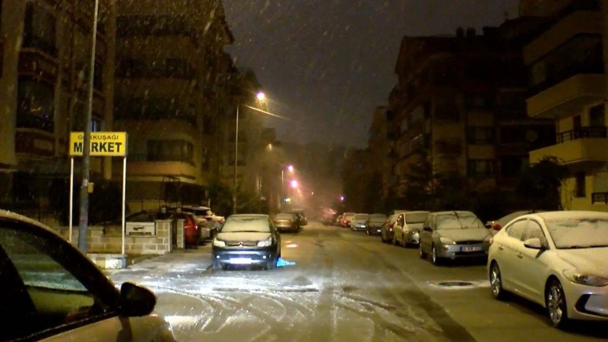 Kentin yüksek kesimlerine lapa lapa yağan kar, kısa sürede zeminde tuttu.