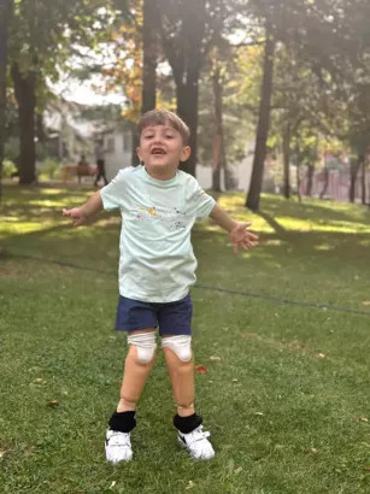 İki bacağı da diz altında ampute edilen Eymen, tedaviyle sağlığına kavuştu.