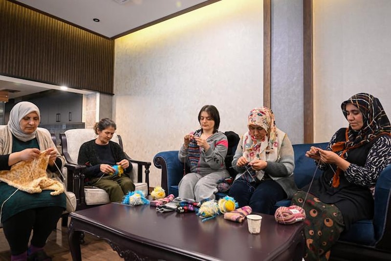 Öğretmenevinde misafir edilen depremzedeler, afetin yarattığı travmanın ağır yükünü atlatmak için uğraş terapisi kapsamında ördükleri çorap, atkı, bere ve yelekleri, afetzedelerin yaşadığı çadır ve konteyner kentlere gönderecek.