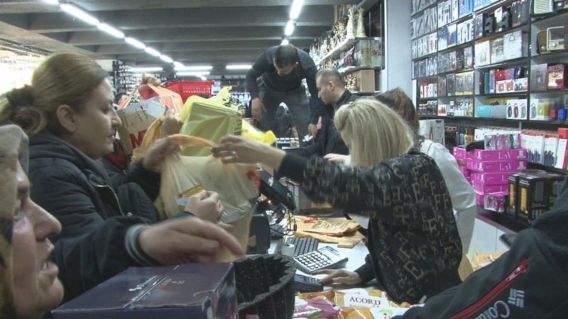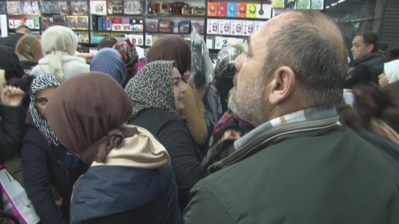 Kepenklerin açılmasıyla birlikte mağaza içerisine bir an önce girmeye çalışan vatandaşlar ezilme tehlikesi yaşadı.