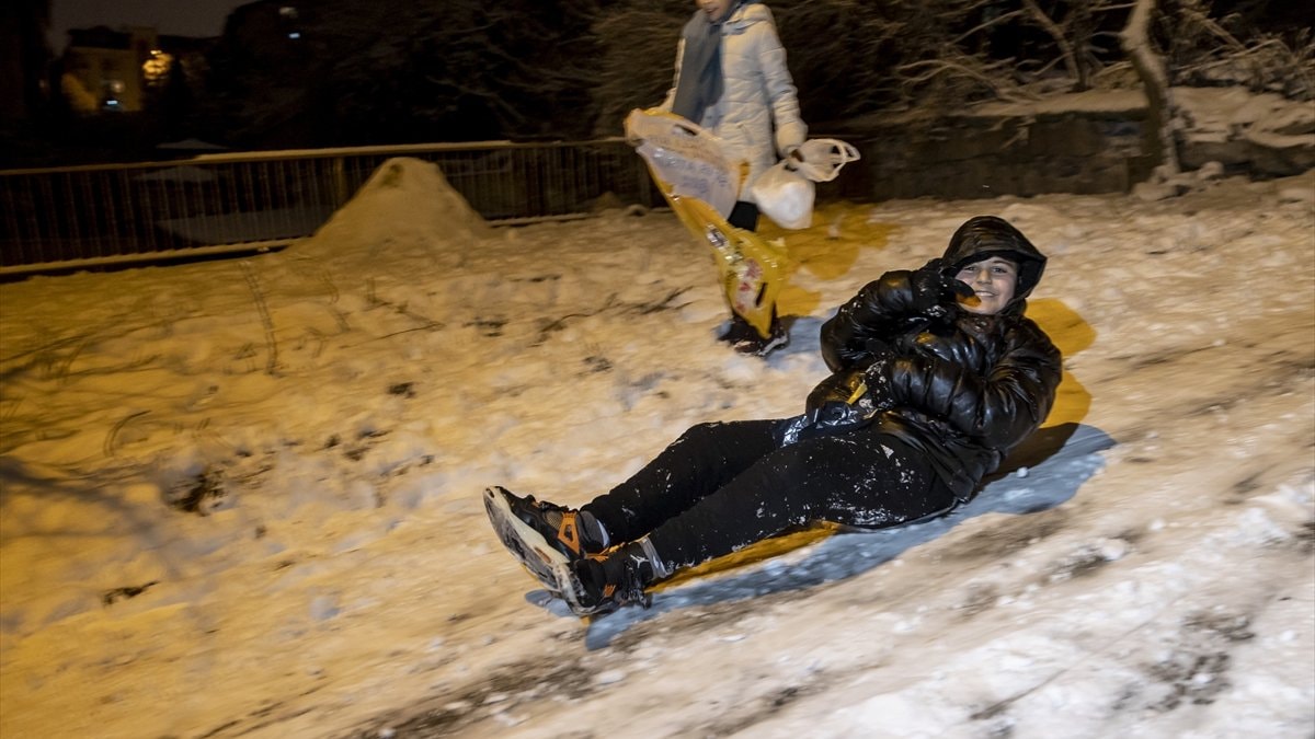 Vatandaşlar karın keyfini fotoğraf ve video çekerek, çocuklar ise karda kayarak ve oyun oynayarak çıkardı.