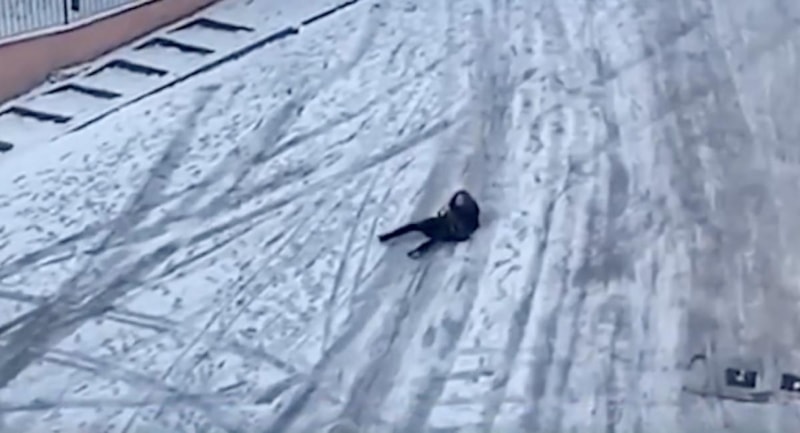 NTV'nin servis ettiği görüntülerde, bir yayanın ayakta durmakta güçlük çektiği, yere kapaklandığı anlar yer aldı.
