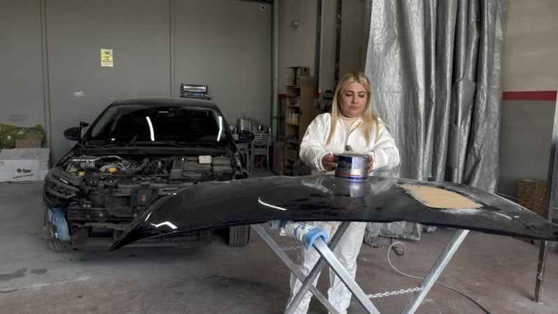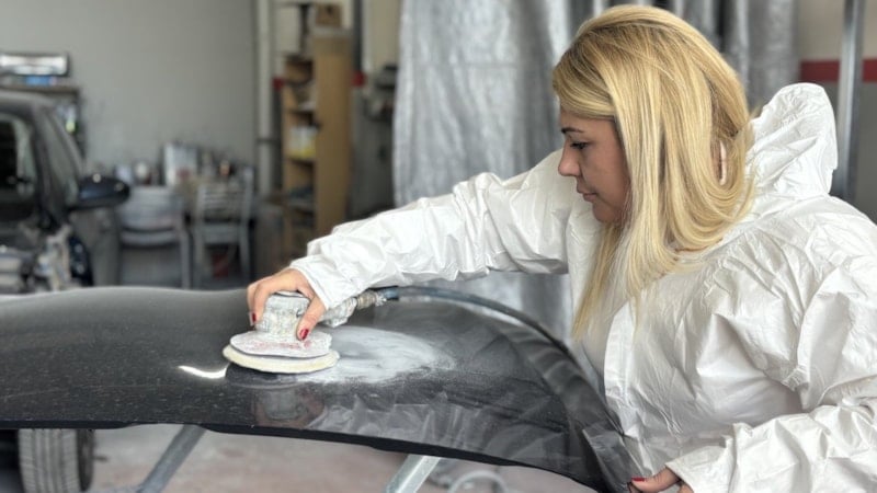 Sibel Akın, uzun yıllar oto servislerinde hasar danışmanı olarak görev yaptıktan sonra otomobillere olan merakı sayesinde kaporta boyacılığına başladı.