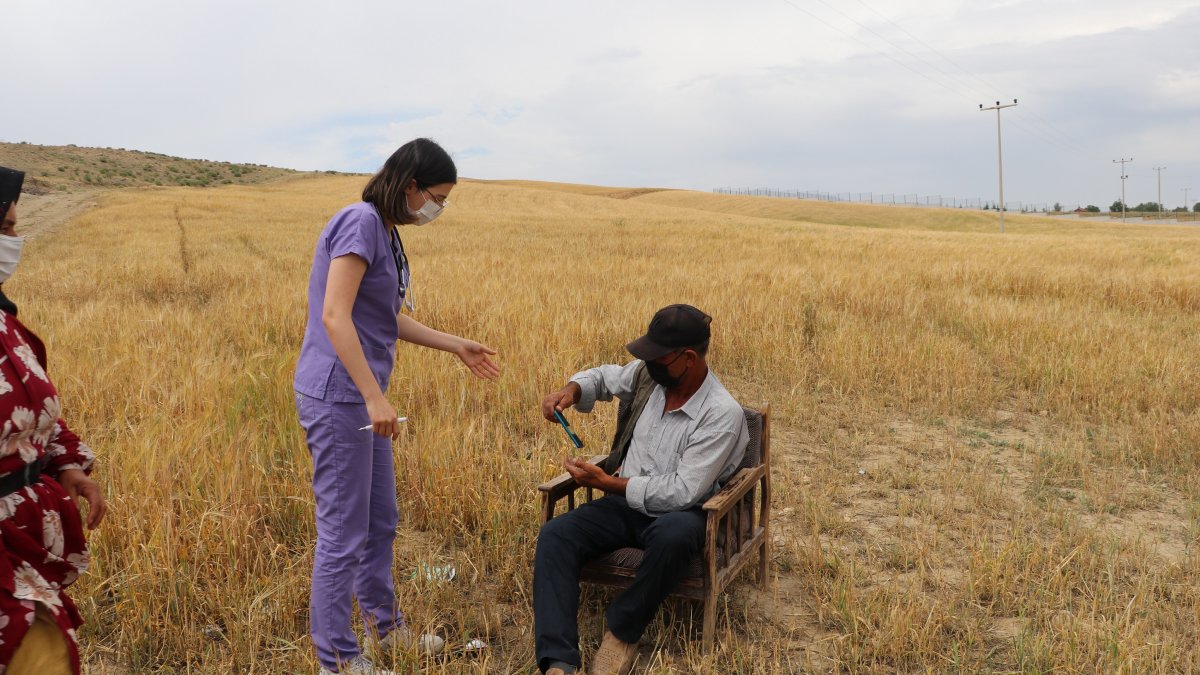 Bu kapsamda Ankara'nın Polatlı ilçesinde, aşı sırası gelen ancak hastaneye gidemeyen tarım işçileri unutulmadı.