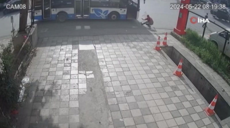 Yayanın otobüsle çarpışması, çevredeki güvenlik kameralarına anbean yansıdı.