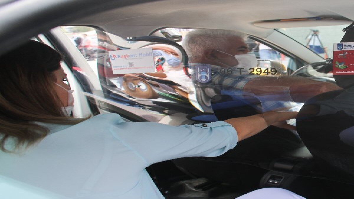 Ankara'da taksi şoförleri ile yolcuların virüse maruz riskini azaltmak amacı ile devreye alınan uygulamada ön koltuklar ile arka koltukları birbirinden ayıran şeffaf bir panel bulunması kararlaştırıldı.