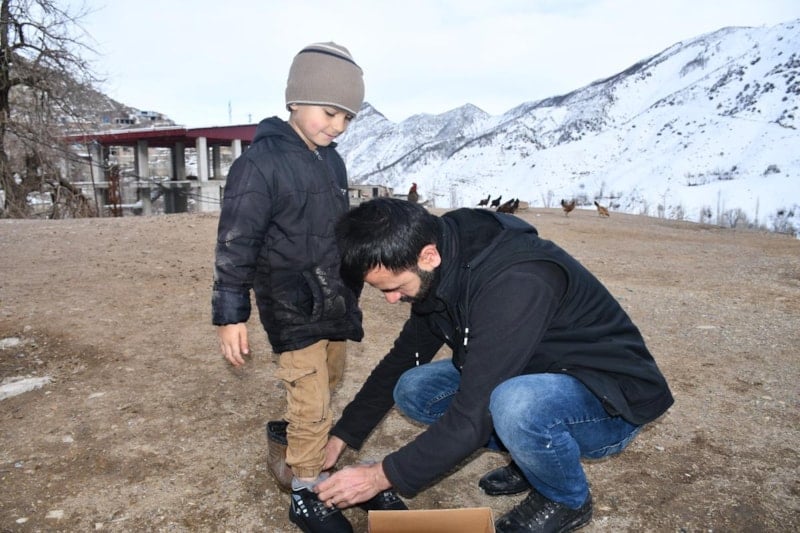 Şahin, dün de Beytüşşebap ve Uludere ilçelerinde 300 çocuğa bot ve mont dağıttı.