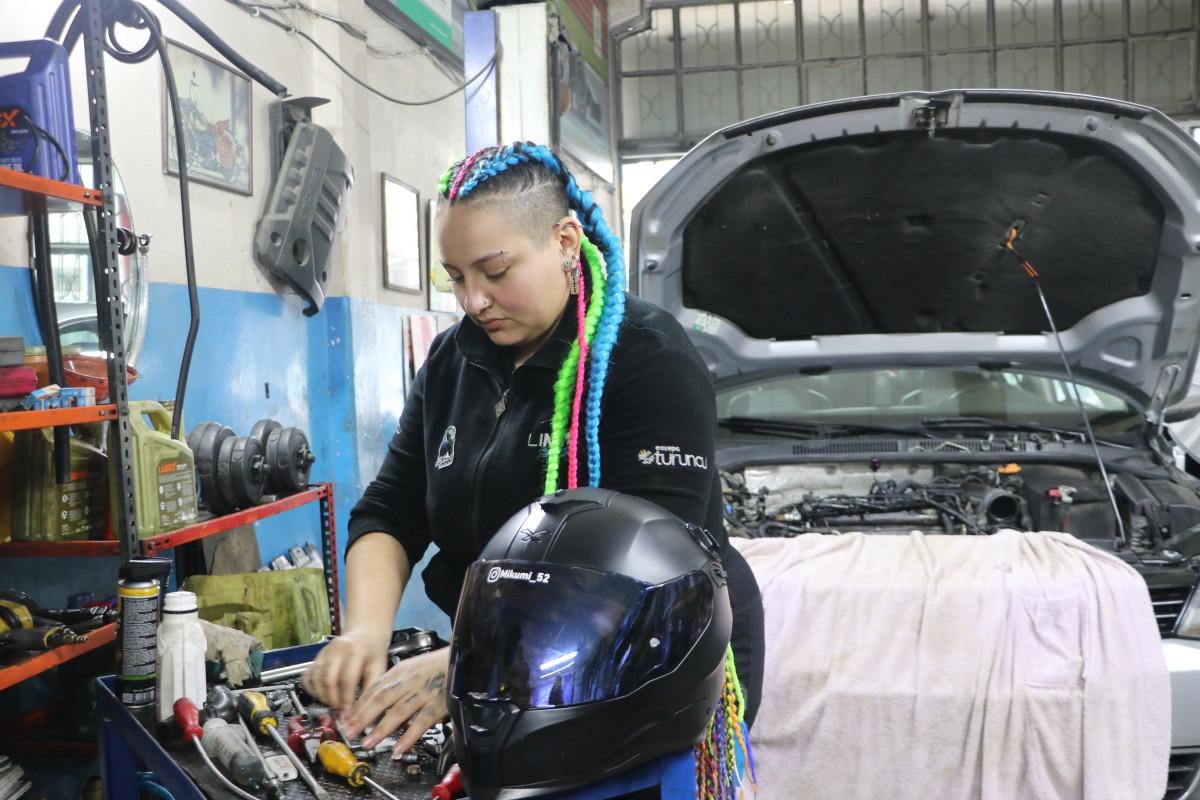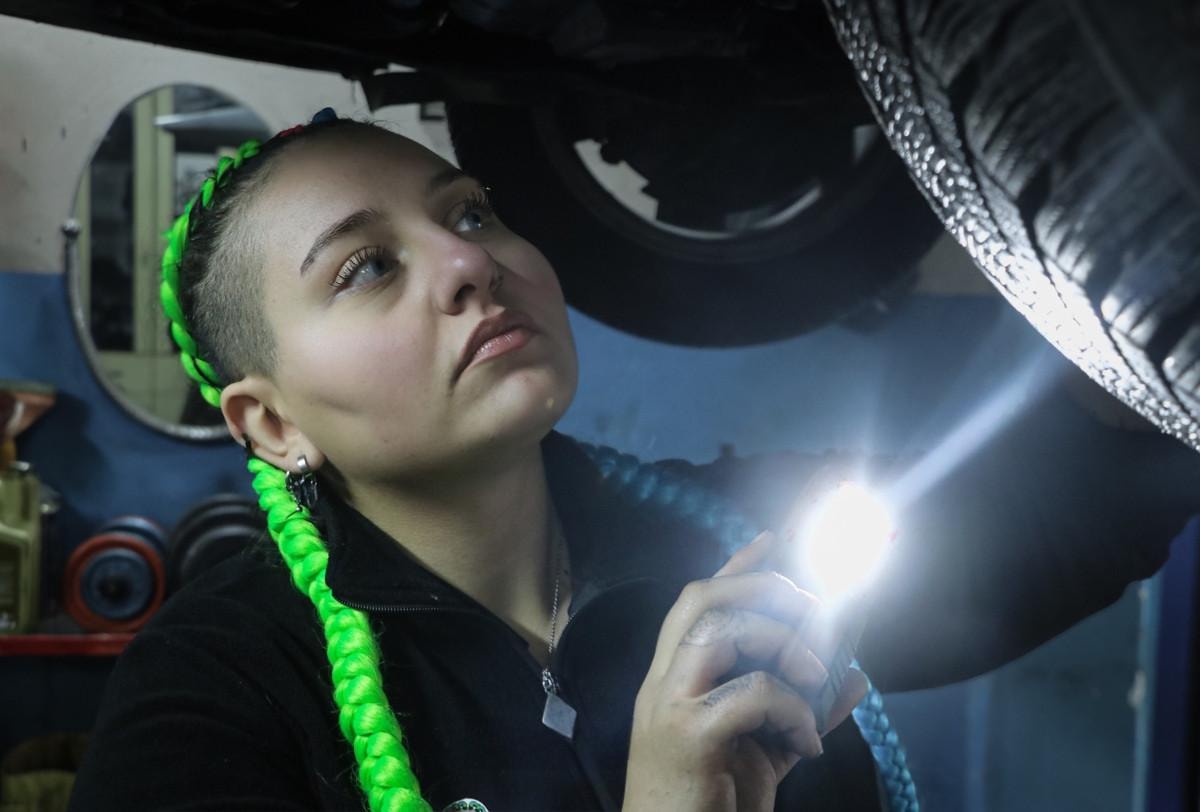 Sanayi sitesinde tek kadın usta olan Uyanık, işi öğrendiği ustası Hakan Özuzun ile araçların ağır bakımlarını yapıyor.