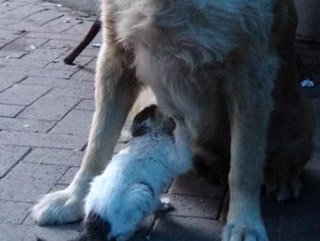 Annesinin dışladığı yavru kediyi köpek sahiplendi