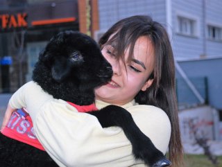 Bugüne kadar evlerinde kedi, kuş, balık gibi evcil hayvanlar besleyen Elif Şimşek (21), kuzuyla yaşamaya başladı.