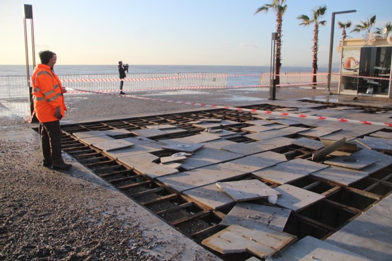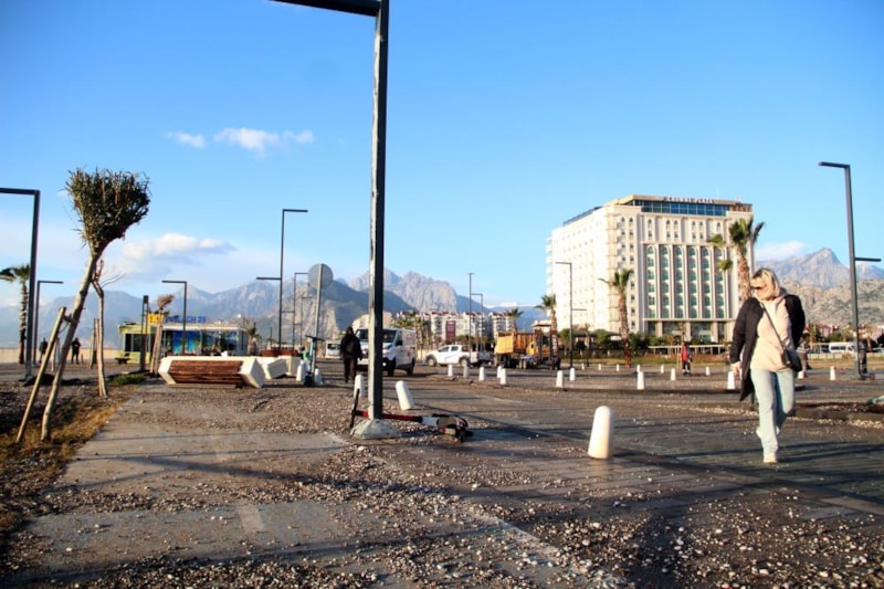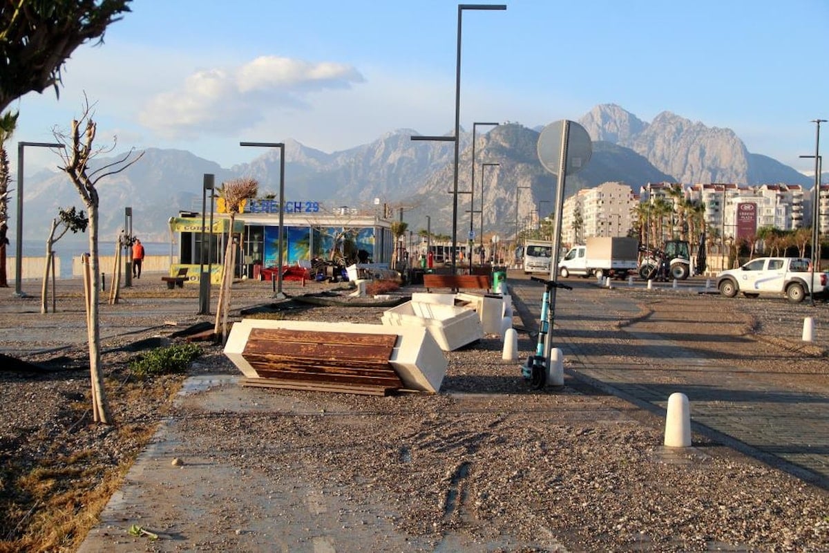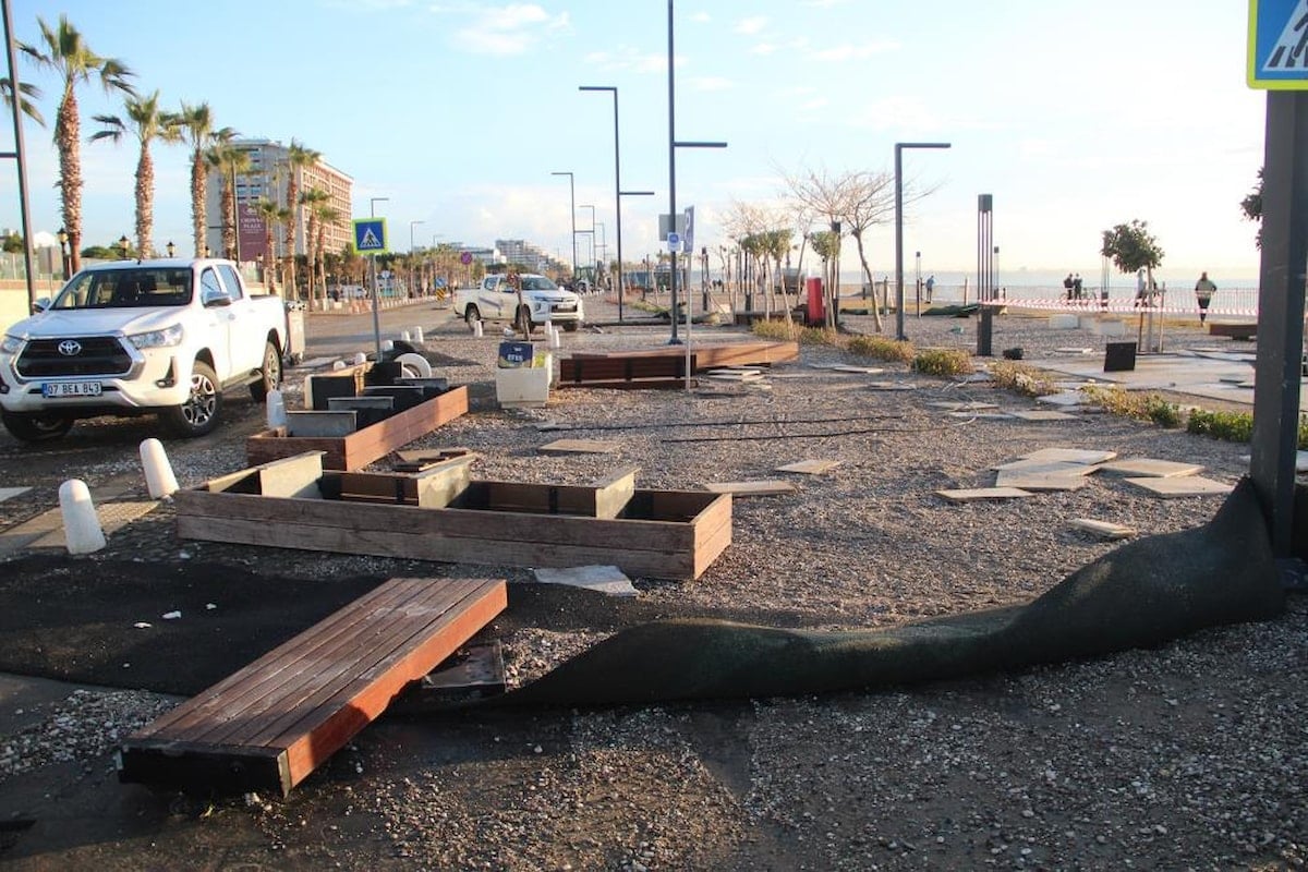 Dev dalgaların yola çıkması nedeniyle yürüyüş yolundaki park ve oturma grupları da zarar gördü.