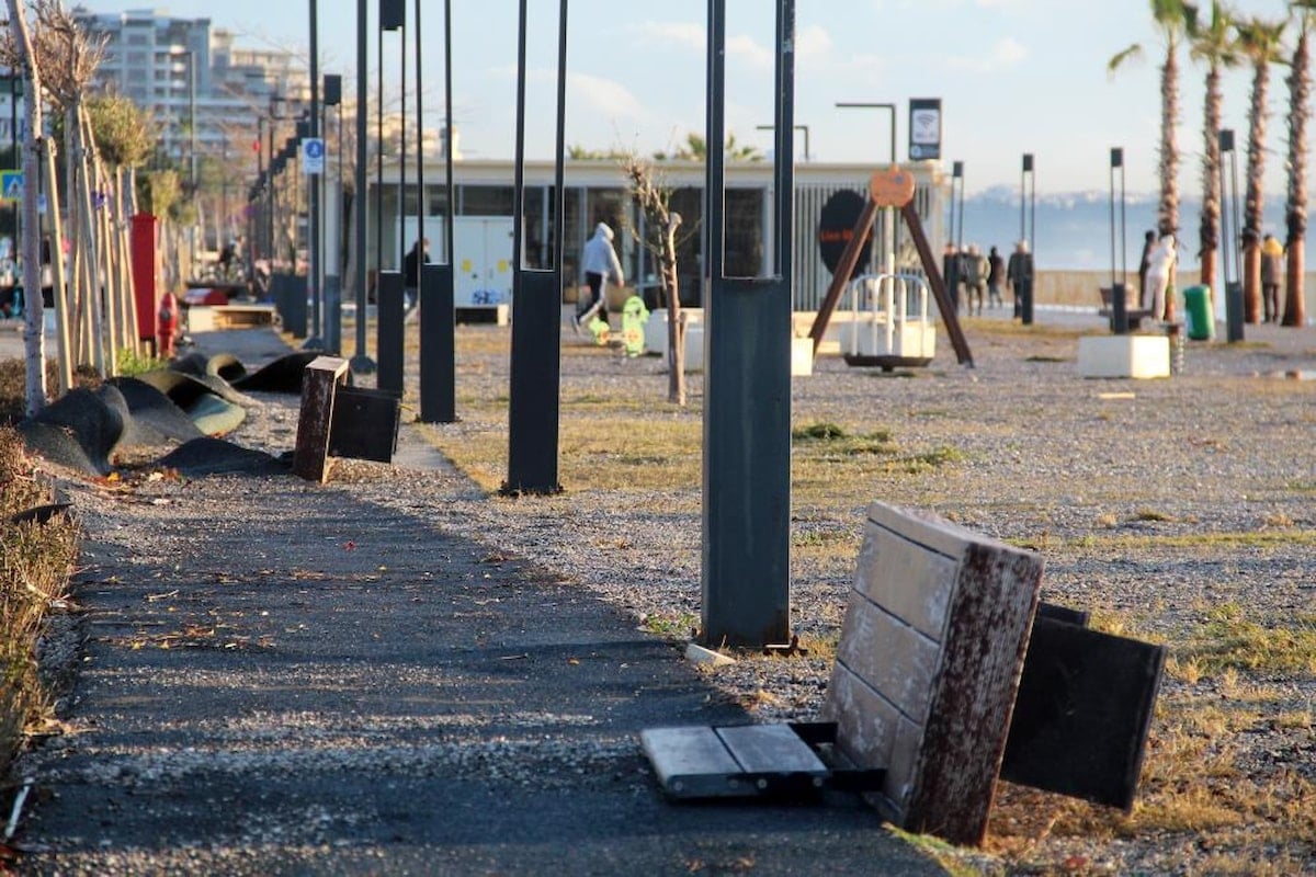 Yerinden sökülen beton banklar, oturma grupları, spor aletleri ve işletmelerin malzemeleri kullanılamaz hale geldi.