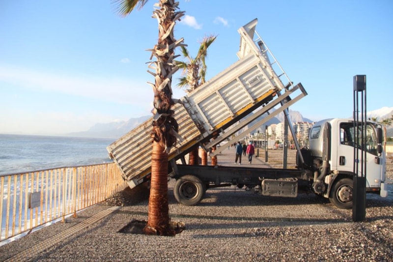 Dünyaca ünlü Konyaaltı Sahili'nde dev dalgalar oluşurken işletmeler de zor anlar yaşadı.