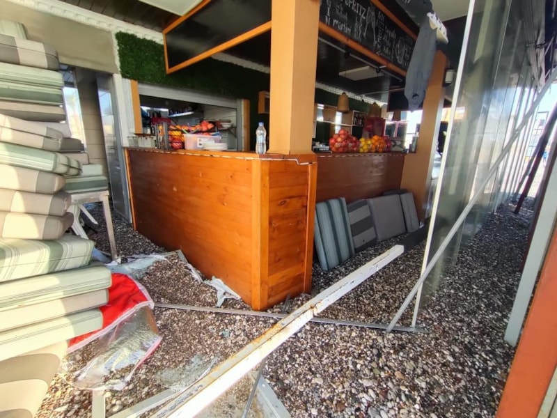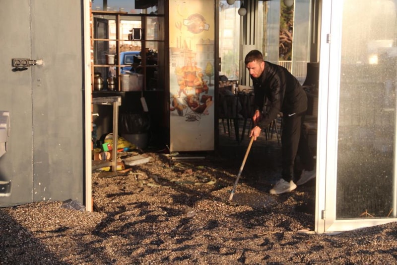 Denizden dalgaların taşıdığı çakıl ve kumlar işletmelerin camlarını ve kapılarını kırıp içeri doldu.