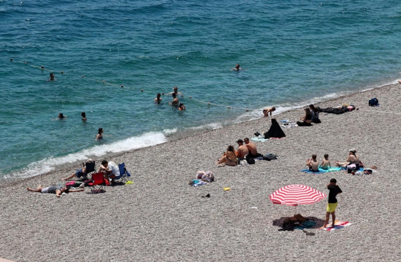 Antalya'da sahillerde yoğunluk, Kurban Bayramı öncesi başladı.