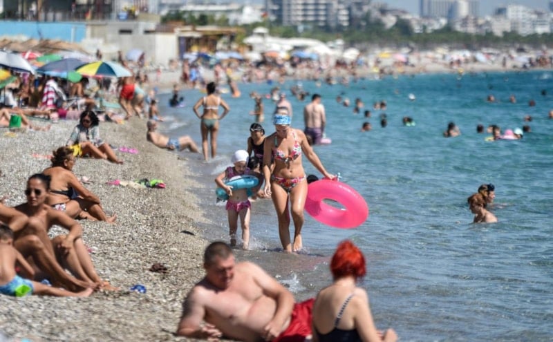 Turizm sezonu devam ederken, sıcak havayı fırsat bilen yerli ve yabancı turistler soluğu Konyaaltı Sahili'nde aldı.