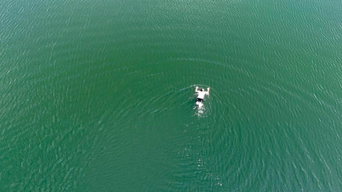 Gölde yüzen vatandaşlar drone ile görüntülendi. Turkuaz renkli sularda serinleyen vatandaşların görüntüleri, bölgenin doğa harikası halini gösterdi.