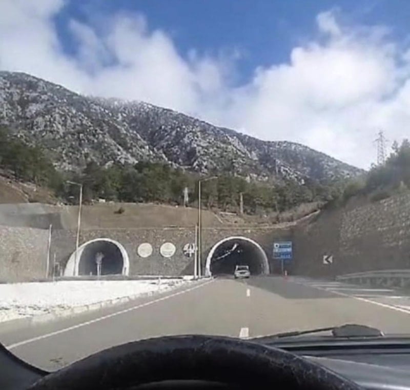 İç Anadolu Bölgesi'ni Akdeniz'e bağlayan 2023 yılında tamamlanan Demirkapı Tüneli'ne güneşli bir havada giren sürücüler, 4 dakikada katetikleri 5 kilometreden sonra karlı havaya çıkış yapıyor.