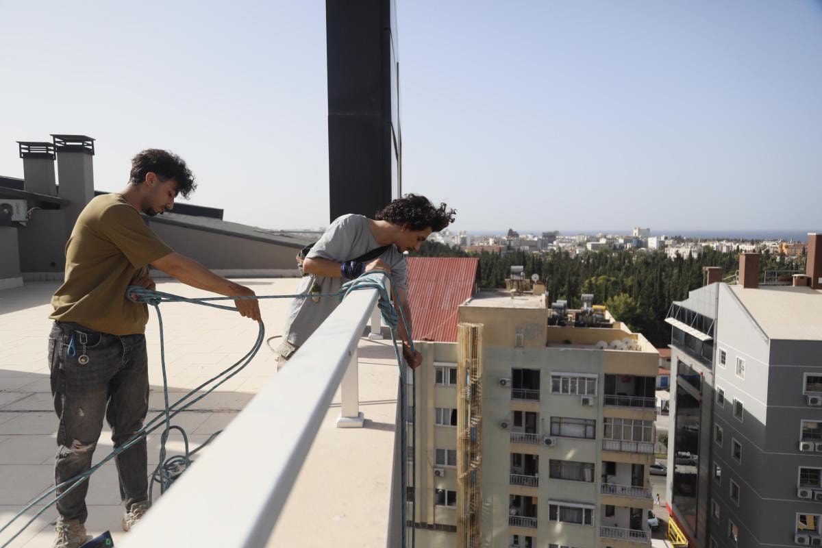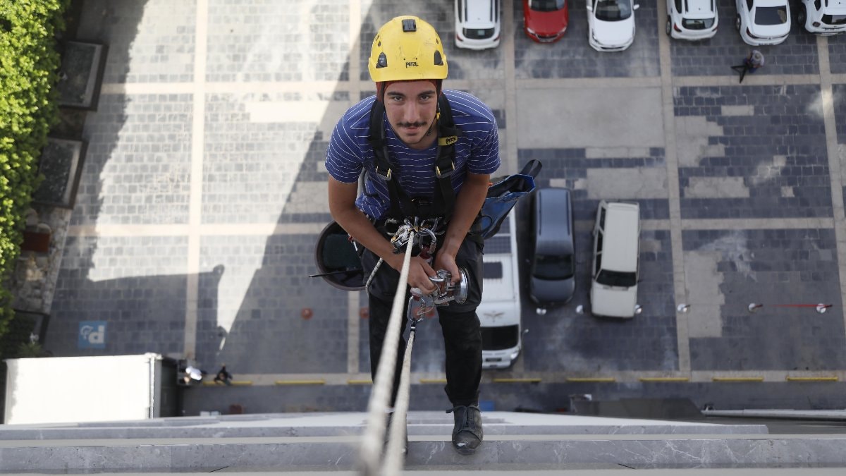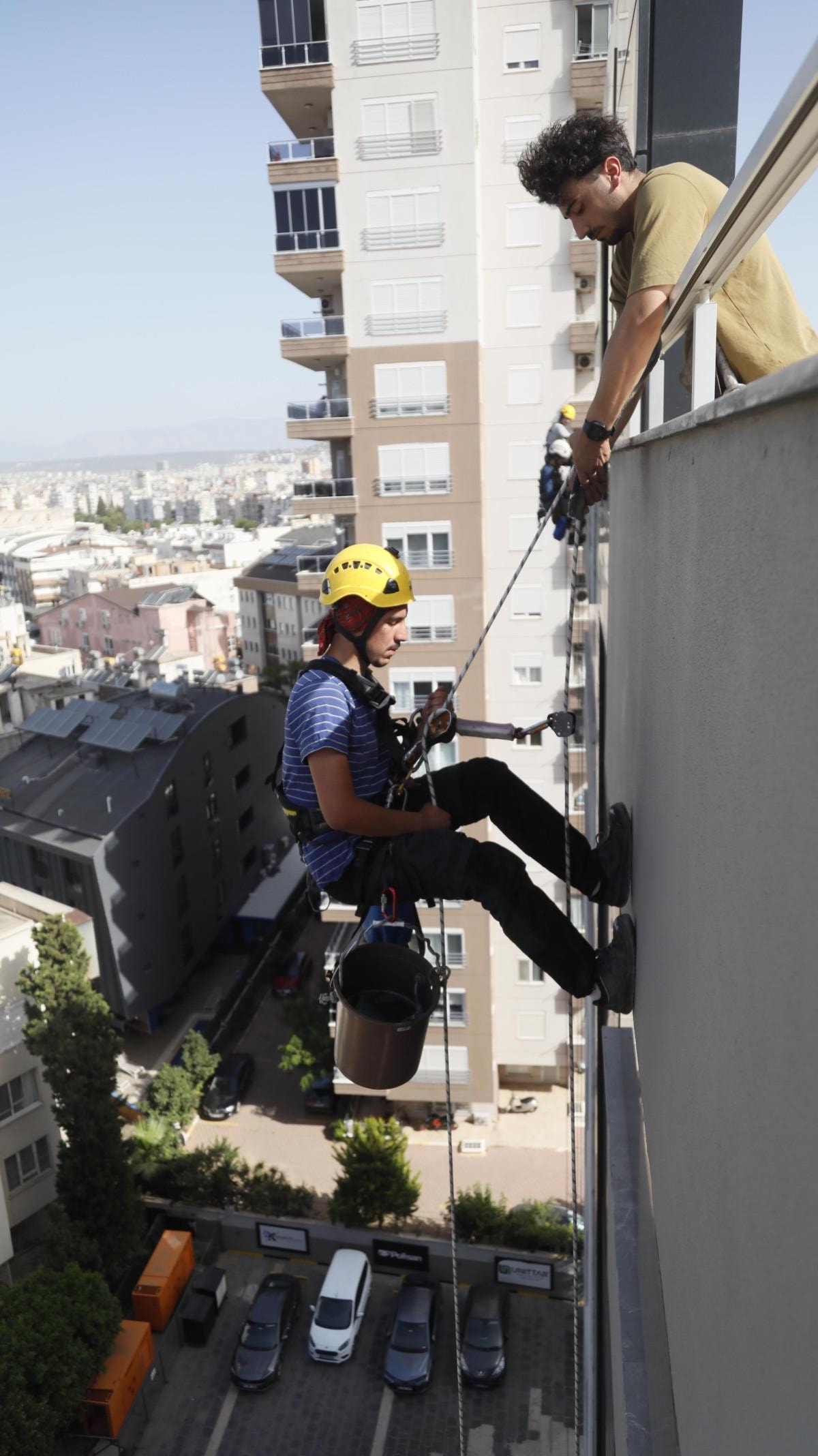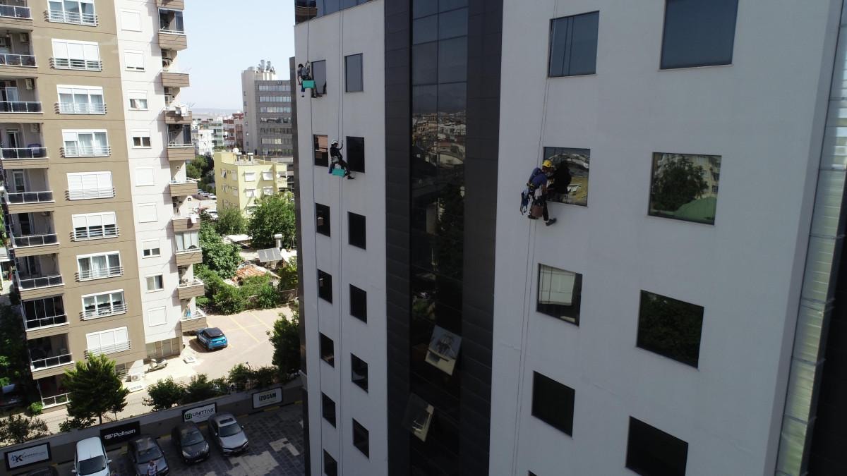 Ailelerinin önceleri karşı çıktığı işten geçimini sağlayan 5 arkadaş, yüksek binalarda halatla asılarak temizlikten tamir işlerine kadar her türlü işi yapıyor.