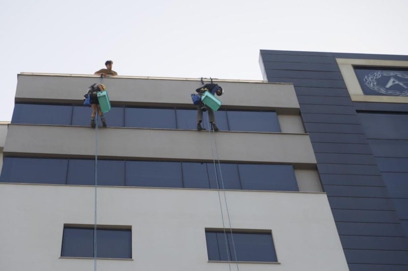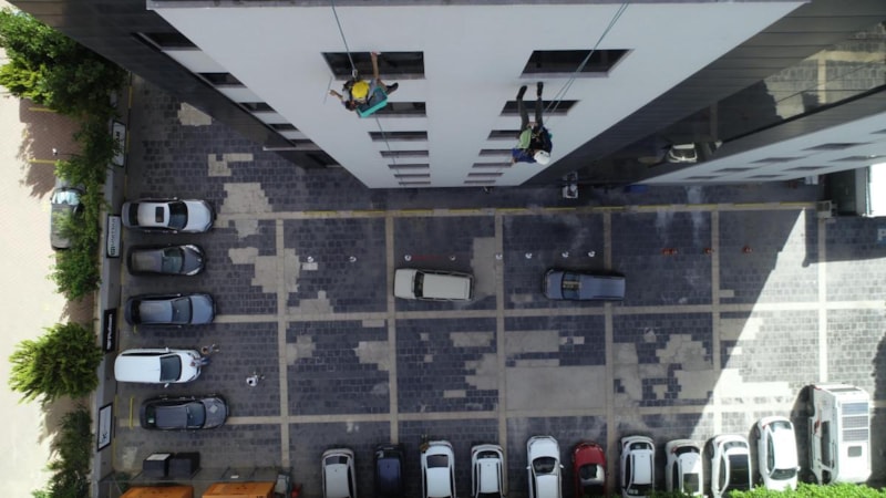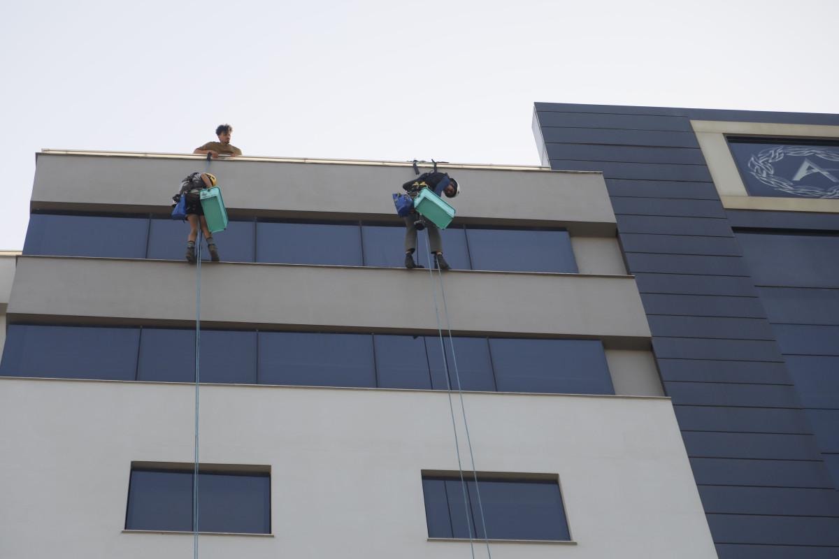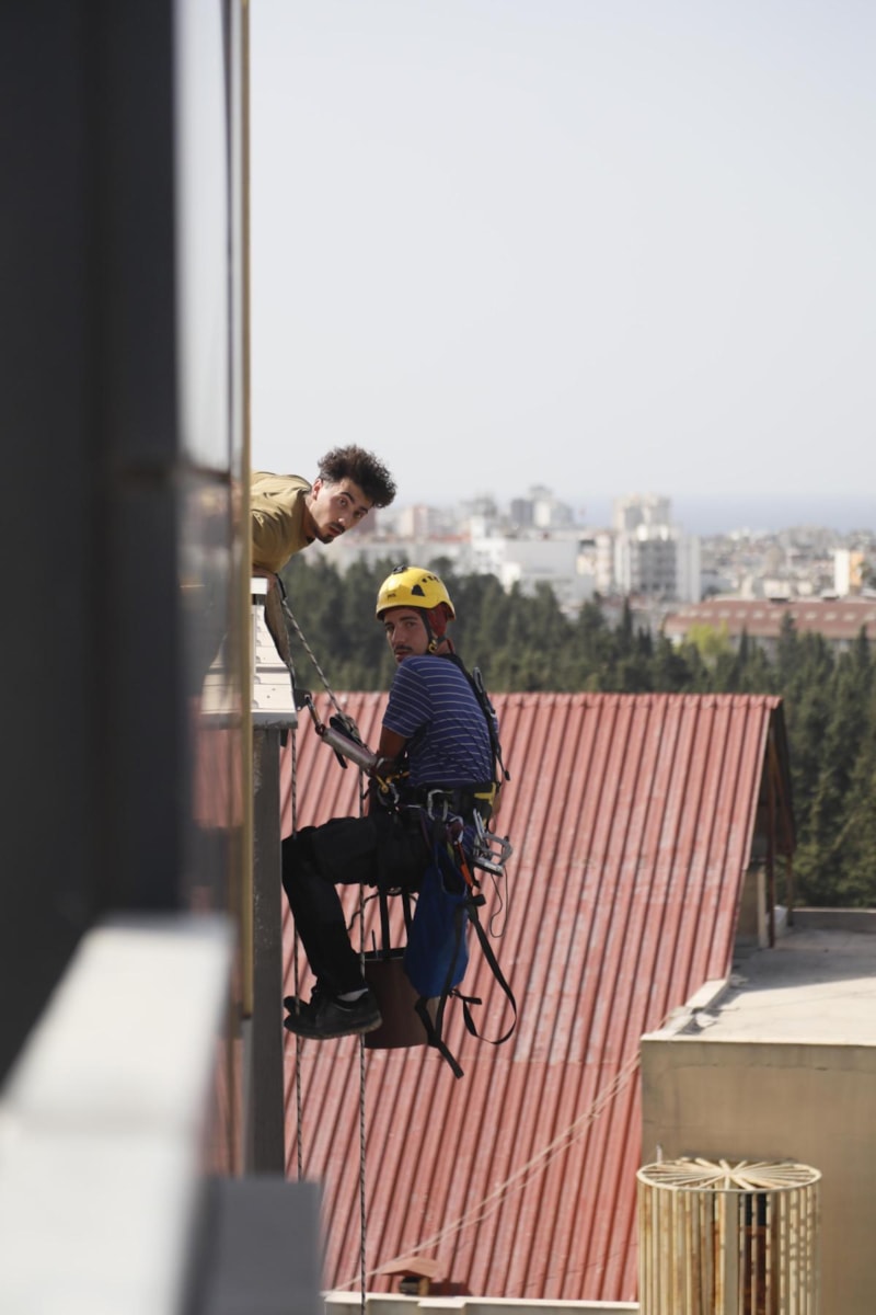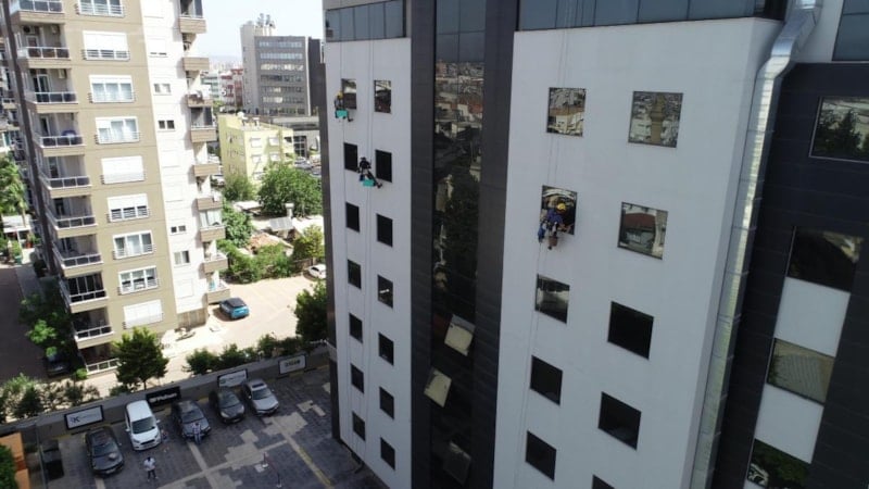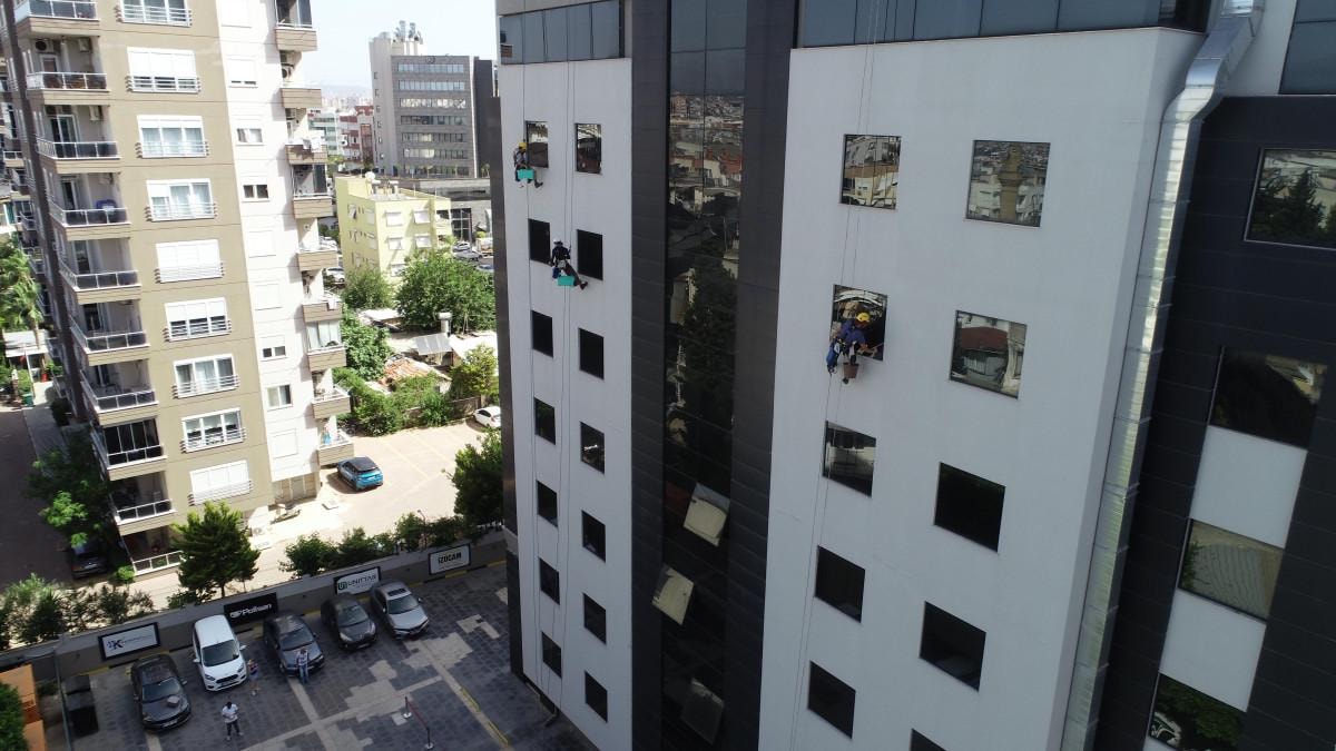 Ailelerinin önceleri karşı çıktığı işten geçimini sağlayan 5 arkadaş, yüksek binalarda halatla asılarak temizlikten tamir işlerine kadar her türlü işi yapıyor.