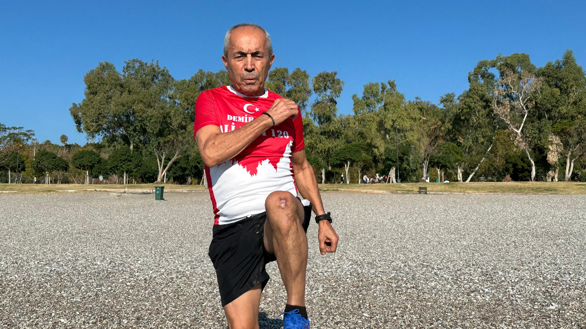 Antalya'da yaşayan 75 yaşındaki milli sporcu Ali Bıdı, çevik halleri ile yaşıtlarına taş çıkarıyor.