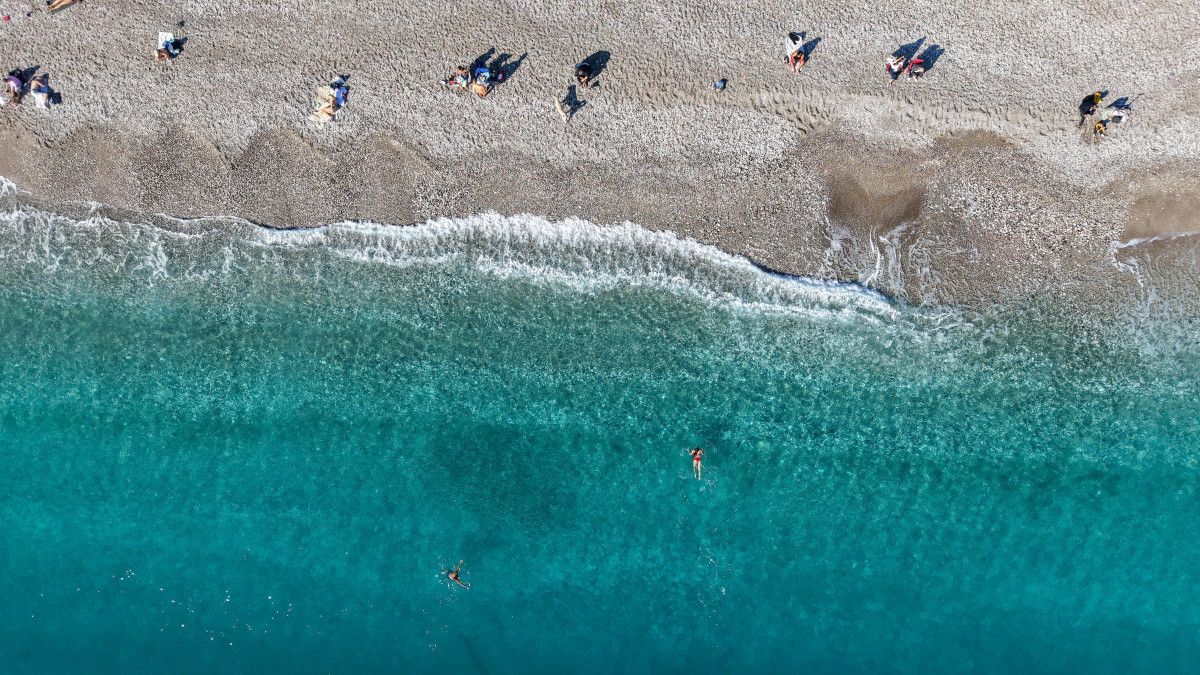 - Konyaaltı Sahili'nde bazı insanlar denize girerken, bazıları güneşlendi.