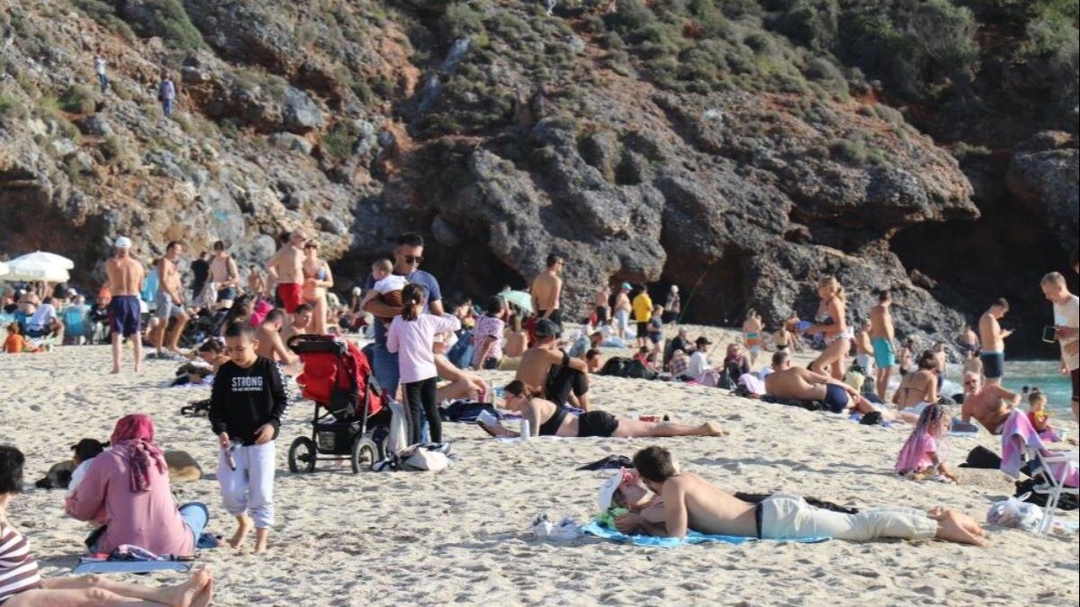 İHA'nın aktarımına göre; dünyaca ünlü Kleopatra Plajı’na gelen vatandaşların kimi denize girerek güneşlenirken, kimi kumsalda oturarak vakit geçirdiği görüldü.