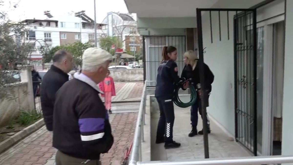 Adrese gelen ekiplerin de genç kızdan yanıt alamaması üzerine Antalya Büyükşehir Belediyesi İtfaiye Daire Başkanlığı’na bağlı ekip, demir kesme makası ile balkon demirini kesti.