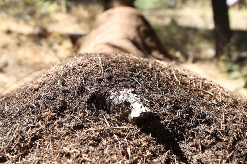 Çığlıkara Ormanları, zararlılara karşı yuvaları 120 santimetreye ulaşan kırmızı orman karıncalarıyla korunuyor.